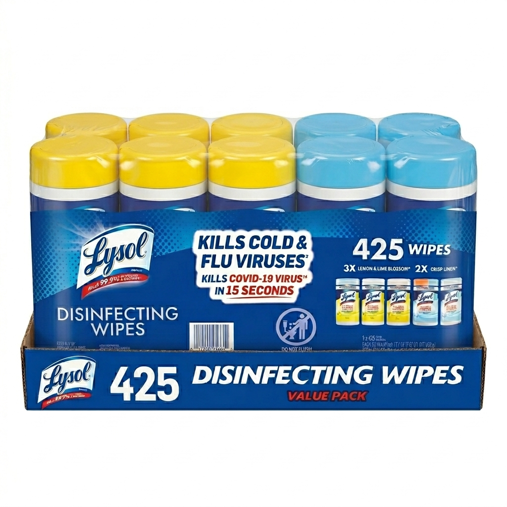 Keep your home or workspace germ-free with the ultimate cleaning essential: the Lysol Disinfecting Wipes Value Pack. This bulk bundle features 425 total wipes split into five convenient 85-count canisters, ensuring you have powerful protection against germs in every room.