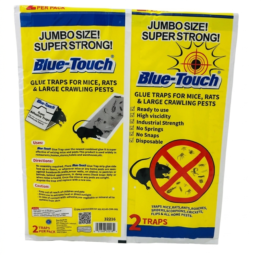 Take control of your environment with the heavy-duty power of Blue-Touch Jumbo Glue Traps. Designed for maximum surface coverage and superior stopping power, these "Jumbo Size" traps are engineered to capture and hold larger rodents like rats and mice, as well as persistent crawling pests. Each pack contains two super-strong adhesive boards that provide professional-grade pest management for your home, warehouse, or commercial kitchen.