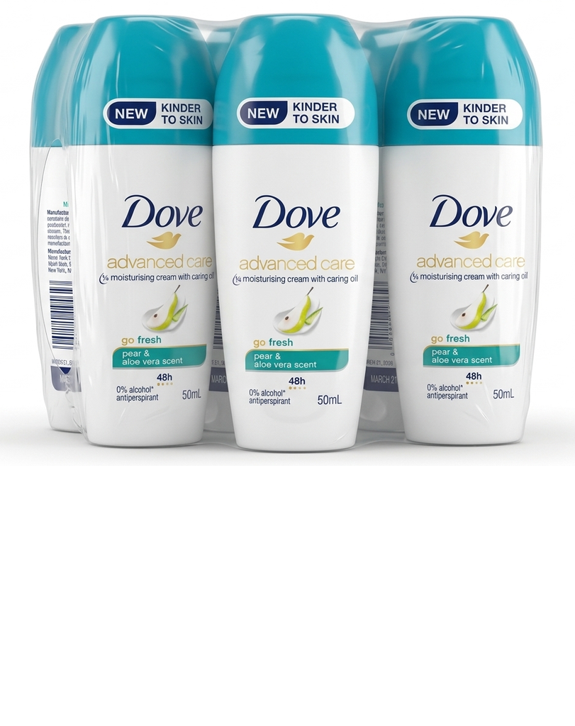 Dove Go Fresh Pear & Aloe Vera Roll-on Deodorant (50ml) provides 48-hour antiperspirant protection with a refreshing, crisp scent. Formulated with 1/4 moisturizing cream and 0% alcohol, it keeps underarms soft, smooth, and protected from irritation. This sweat-reducing, nourishing formula is ideal for daily care and freshness.